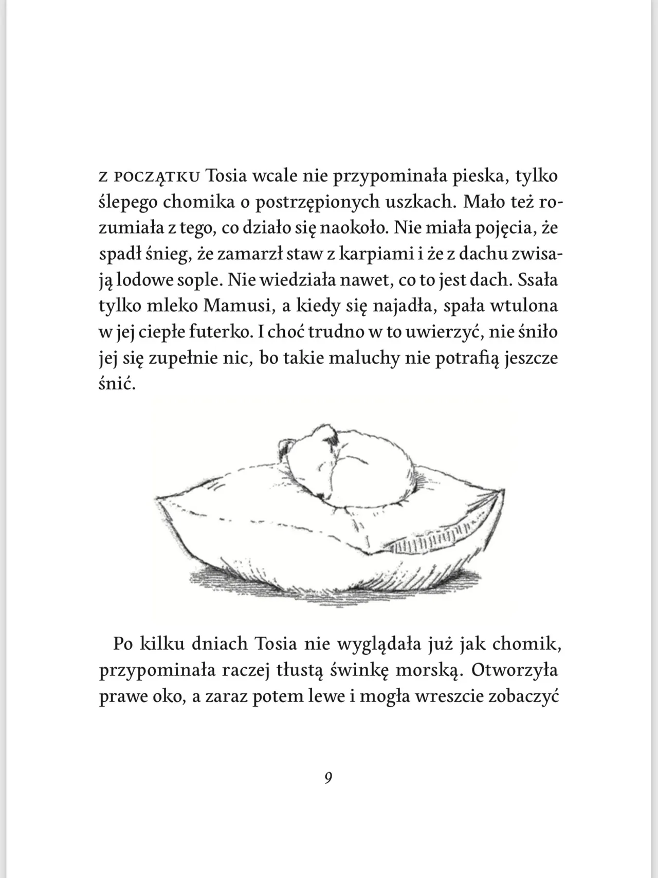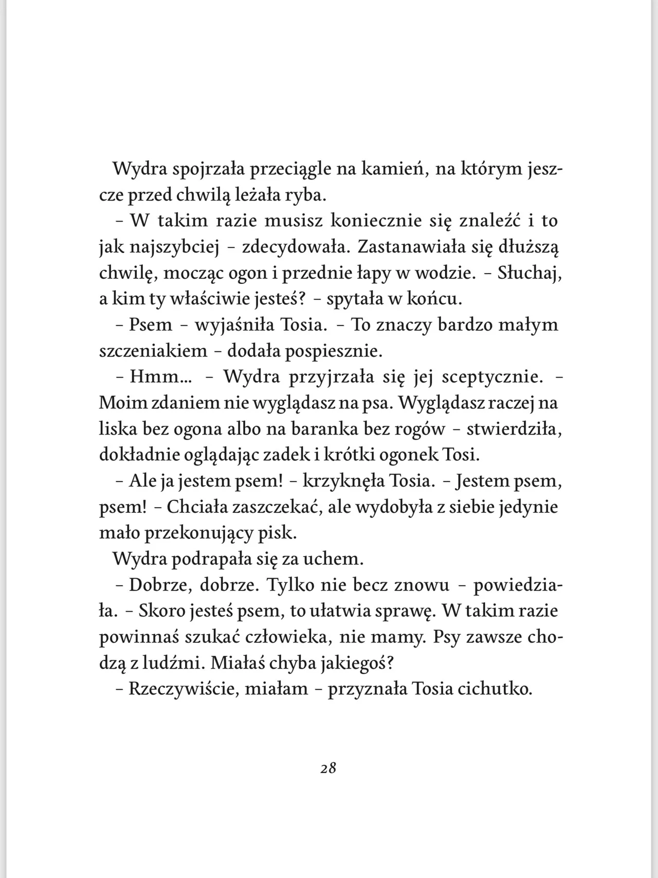 Pewnego dnia mały szczeniak Tosia wyrusza samotnie w świat, który okaże się znacznie większy niż przypuszczała i zamieszkały przez zwierzęta, o istnieniu których nie miała pojęcia. Jeżeli chcecie się dowiedzieć: kto straszy w lesie? czy piesek może stać się dzikiem? i co jedzą wydry?