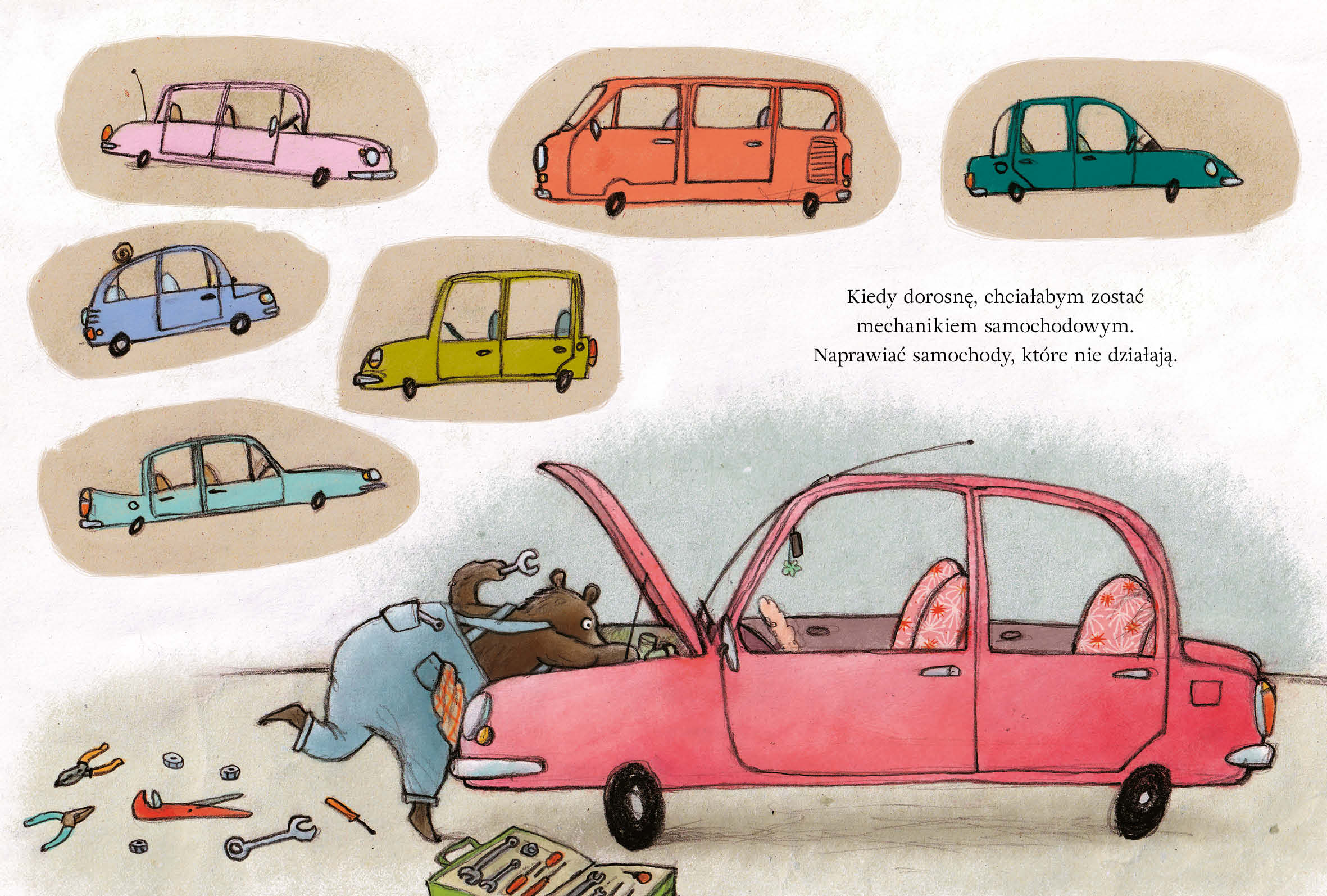 Książka o życiu szczęśliwej rodziny, w której mama jest kierowcą a tata przedszkolankiem. W prosty sposób i bez podkreślenia niecodzienności tej sytuacji pokazuje, że nie zawsze podział obowiązków i ról w parze musi wyglądać tak samo.