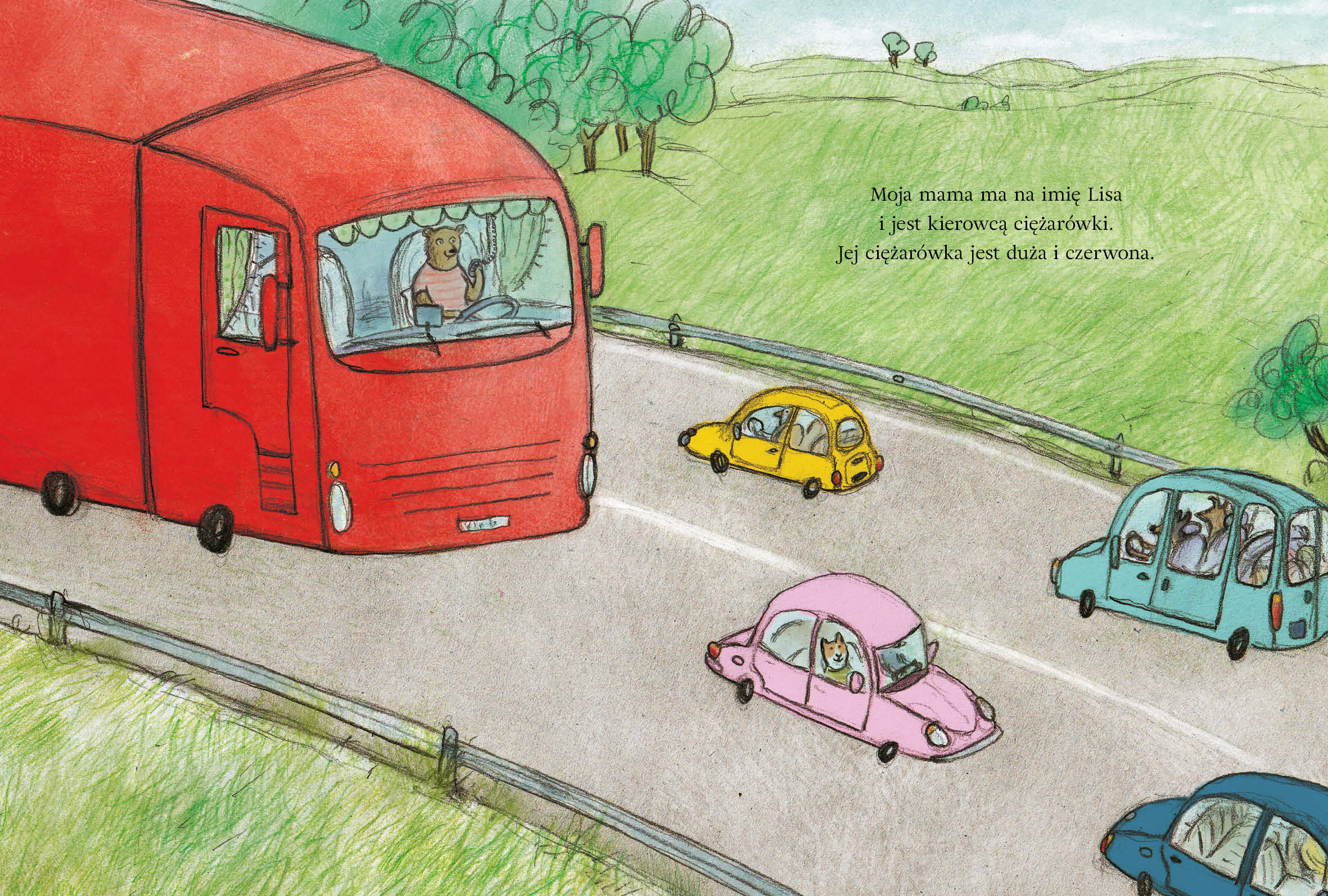 Książka o życiu szczęśliwej rodziny, w której mama jest kierowcą a tata przedszkolankiem. W prosty sposób i bez podkreślenia niecodzienności tej sytuacji pokazuje, że nie zawsze podział obowiązków i ról w parze musi wyglądać tak samo. Dla Lisy sposób funkcjonowania jej rodziny jest naturalny i z prostotą kilkulatki opowiada o nim czytelnikowi.
